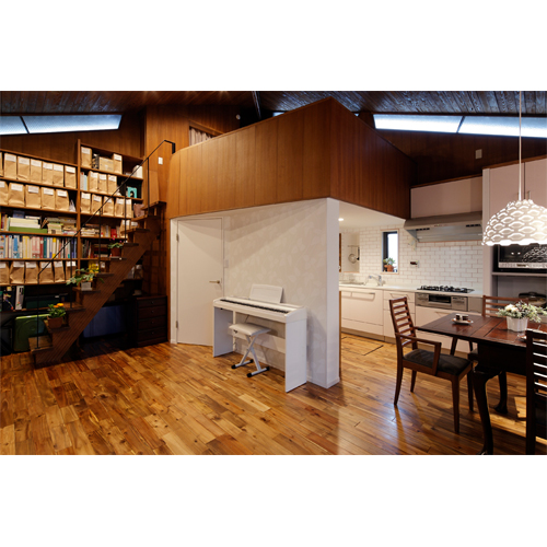 リフォーム後は「思い入れのある高い天井や壁一面の本棚、ロフト等を残し、更に明るさと機能が加わり、リフォーム部分と既存と調和のとれた空間になった。自然の明るさ、照明の明るさを楽しんでいる。」とお喜びいただきました。