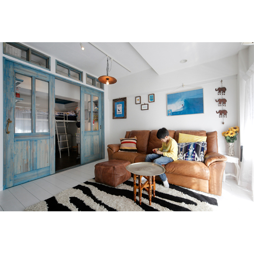 子ども部屋とリビングの間仕切りはあえて壁にはせず、引き違い戸を採用。