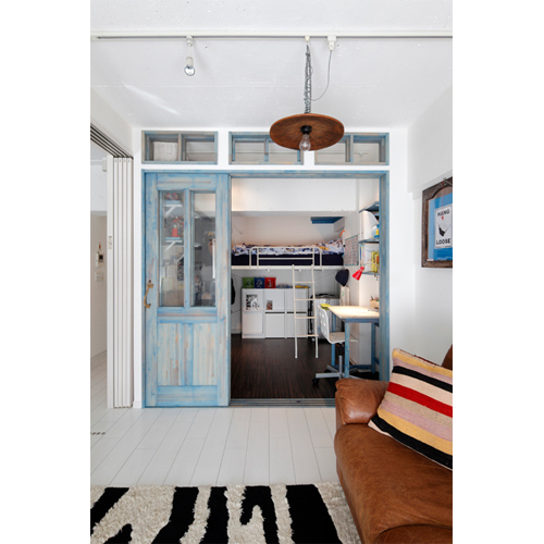 扉を開放すればリビングとつながり、ワンルームとなる間取りにしました。