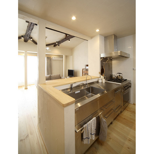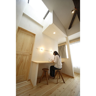 完成したお住まいは、子供部屋と、キッチン、リビング、大イングからなる機能的で使い勝手のいい間取りに。床はパイン材、壁には珪藻土を使いました。「リビングもキッチンもとても気に入っています。でもこれでお終いではありません。家族みんながいつまでも快適に暮らせるよう、これからも知恵をしぼり、工夫を重ねていきたいと思います」