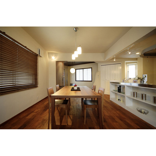 和室とダイニングが緩やかにつながるように壁を設けず、格子と腰壁で開放感を出しました。