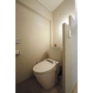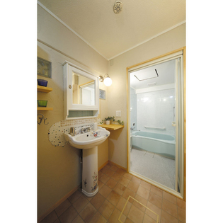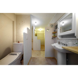 エレガントスタイルのサニタリーは、トイレとの間仕切りを改良し、圧迫感を取り払って広々空間へ変身。とっても素敵なので、入り口の扉も取り払い、あえて見せるサニタリーにしました。