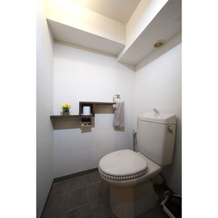 移設が不可能なインターホンは存在感を抑えるためニッチの中に。