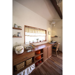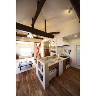 2階は優先順位として家族や親しい人達とのコミュニケーションを第一に考え、キッチンを家造りの核にしました。施主のニーズに合わせ、設備機器、サイズ展開、収納計画が可能な造作キッチンを施工。キッチンを中心に展開する様々なコーナー使いは、目的や用途を明確にすることで、理想の導線とコミュニケーションを生み出します。天井の吹き抜けや梁は空間に広がりを、ベランダのデッキは外の景色を取り込みます。ライフステージの変化にも対応可能な壁に隠れる可動式間仕切り建具により個室を1部屋が増やせる間取り。