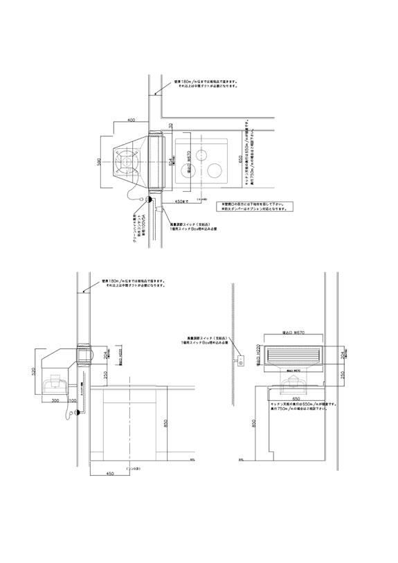 下引換気扇 グリーンハイキ 標準規格品 外ダクトタイプ 04 IH調理器具用の説明