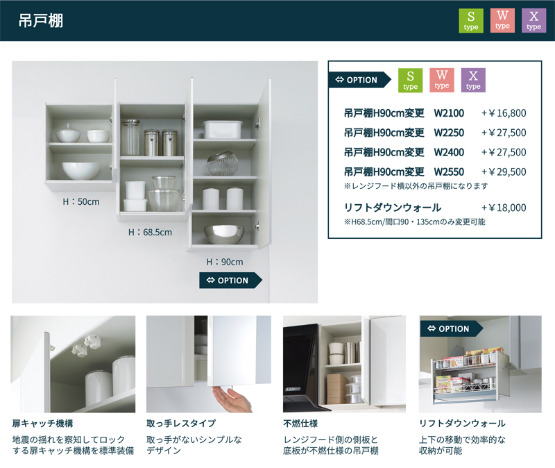 Q. 吊戸棚の間口・組み合わせ(開き方)変更はできますか?