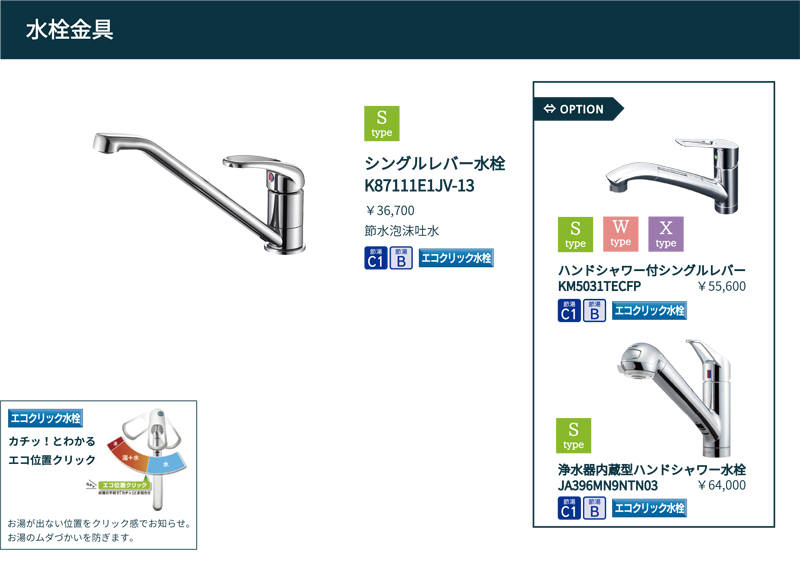 W2100は食洗機チェンジオプションがご利用いただけませんので予めご了承ください。