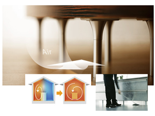 • キッチンをリビング側に設置すると、キッチン自体が壁になり、空気の流れを遮ります。しかも調理中は、キッチン側の空気回りが悪化。リビングがわは心地よくても、キッチンにいる人は「寒さ」「熱さ」に悩まされることになります。エアフローで床から浮いてるキッチンなら、壁にならずに部屋全体の空気もスムーズに循環。キッチンを部屋の中心に置くために、足元の通気性は大切なポイントです。