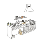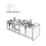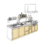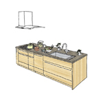 キッチンの形にあわせて、床と壁面それぞれにキッチンを固定する金具をご用意しています。ご確認の上、必要数量を必ずご使用ください。床タイルへ取付する際は、タイルの割れ、ヒビが発生するおそれがあります。