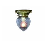 ガラスシェードは、吹きガラス工法または型押しガラス工法で作成されています。ガラスシェード内に気泡が残ることがあったり、形の若干のゆがみや、中心線のずれなどが起きることがあります。また、エッチング技法を使ったガラスシェードは手作業のため、模様にわずかな曲がり等が起きることがあります。