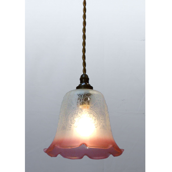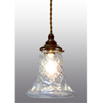 ガラスシェードは、吹きガラス工法または型押しガラス工法で作成されています。ガラスシェード内に気泡が残ることがあったり、形の若干のゆがみや、中心線のずれなどが起きることがあります。また、エッチング技法を使ったガラスシェードは手作業のため、模様にわずかな曲がり等が起きることがあります。