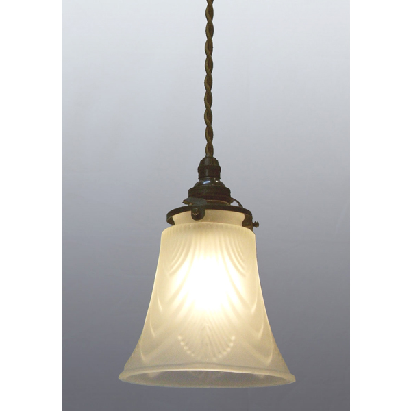 ガラスシェードは、吹きガラス工法または型押しガラス工法で作成されています。ガラスシェード内に気泡が残ることがあったり、形の若干のゆがみや、中心線のずれなどが起きることがあります。また、エッチング技法を使ったガラスシェードは手作業のため、模様にわずかな曲がり等が起きることがあります。