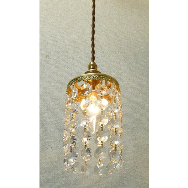 クリスタルの連結パーツ(上から下までのクリスタルが繋がった形のパーツ)と、それ以外の金物部分とに分かれた形でのお届けとなり、お客様にこれらを最終組み立てしていただく必要があります。