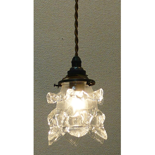 ガラスシェードは、吹きガラス工法または型押しガラス工法で作成されています。ガラスシェード内に気泡が残ることがあったり、形の若干のゆがみや、中心線のずれなどが起きることがあります。また、エッチング技法を使ったガラスシェードは手作業のため、模様にわずかな曲がり等が起きることがあります。