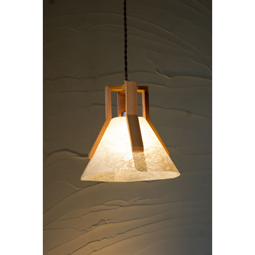 シェード部分には合成樹脂でコーティングした、強化和紙(ワーロン)を使用していますので、和紙の風合いはそのままに破れにくく、水拭きもできる実用的な照明に仕上がっています。
