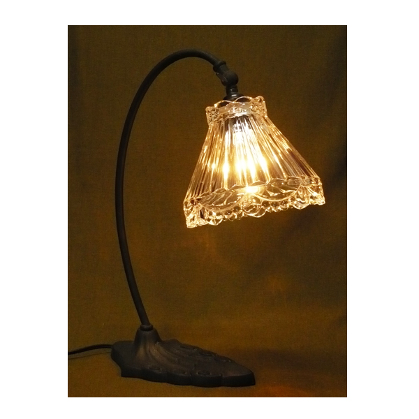 ガラスシェードは、吹きガラス工法または型押しガラス工法で作成されています。ガラスシェード内に気泡が残ることがあったり、形の若干のゆがみや、中心線のずれなどが起きることがあります。また、エッチング技法を使ったガラスシェードは手作業のため、模様にわずかな曲がり等が起きることがあります。