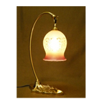 ガラスシェードは、吹きガラス工法または型押しガラス工法で作成されています。ガラスシェード内に気泡が残ることがあったり、形の若干のゆがみや、中心線のずれなどが起きることがあります。また、エッチング技法を使ったガラスシェードは手作業のため、模様にわずかな曲がり等が起きることがあります。