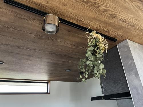 天井に合わせたとても素敵な照明で、グリーンも映えますね。