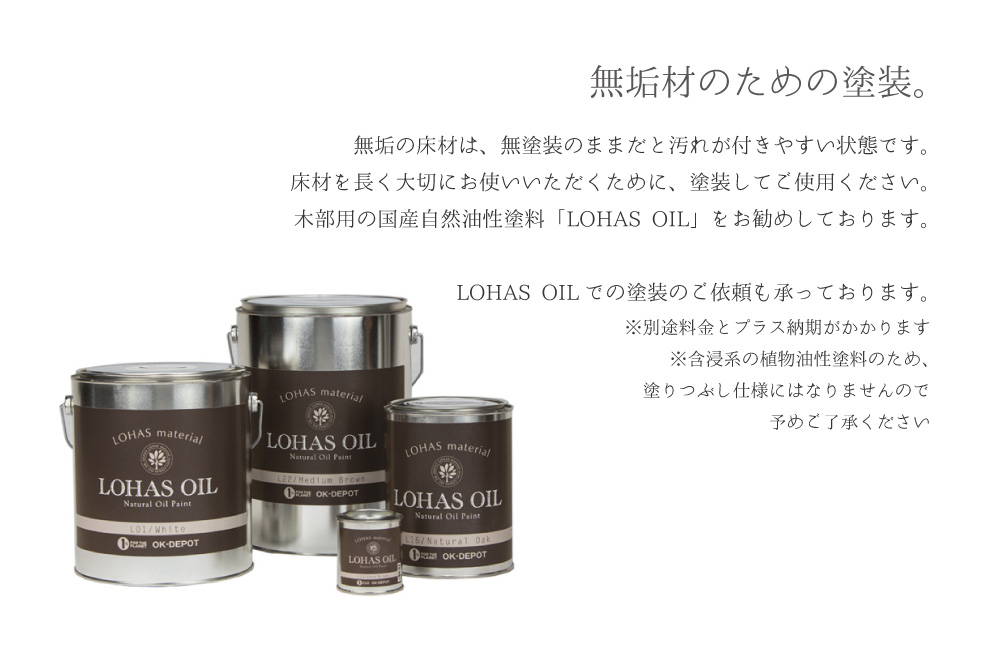 自然オイル塗料「ロハスオイル」を使用しております。特別色ご希望の方は、ロハスオイル商品ページのカラーバリエーションを参考(☆)としてご参照ください。