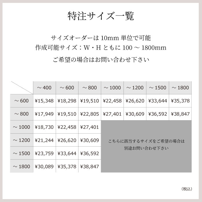 ※サイズオーダーをご希望の方はお問い合わせください。お見積りいたします。