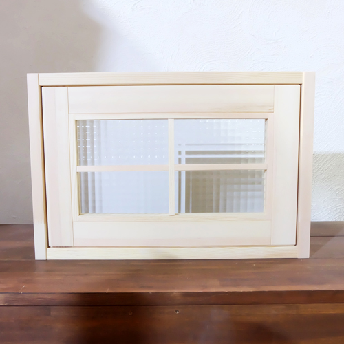 「サイズオーダー 室内窓 通風窓 インテリアウィンドウ 上げ下げ窓 パイン 無塗装 両面木格子 W600×H800mm プレハング込」のレビューを書く