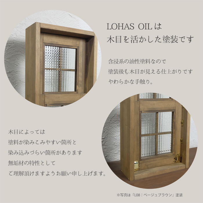 LOHAS material(ロハスマテリアル) 室内窓 通風窓 インテリアウィンドウ 上げ下げ窓 パイン LOHAS OILカラー塗装 W600×H800mm プレハング込の説明
