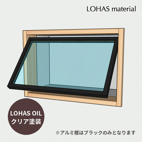 LOHAS material(ロハスマテリアル) 室内通風窓 インテリアウィンドウ アルミ室内窓 横辷り出し窓 パイン クリアオイル塗装 W596×H405mm プレハング込の説明