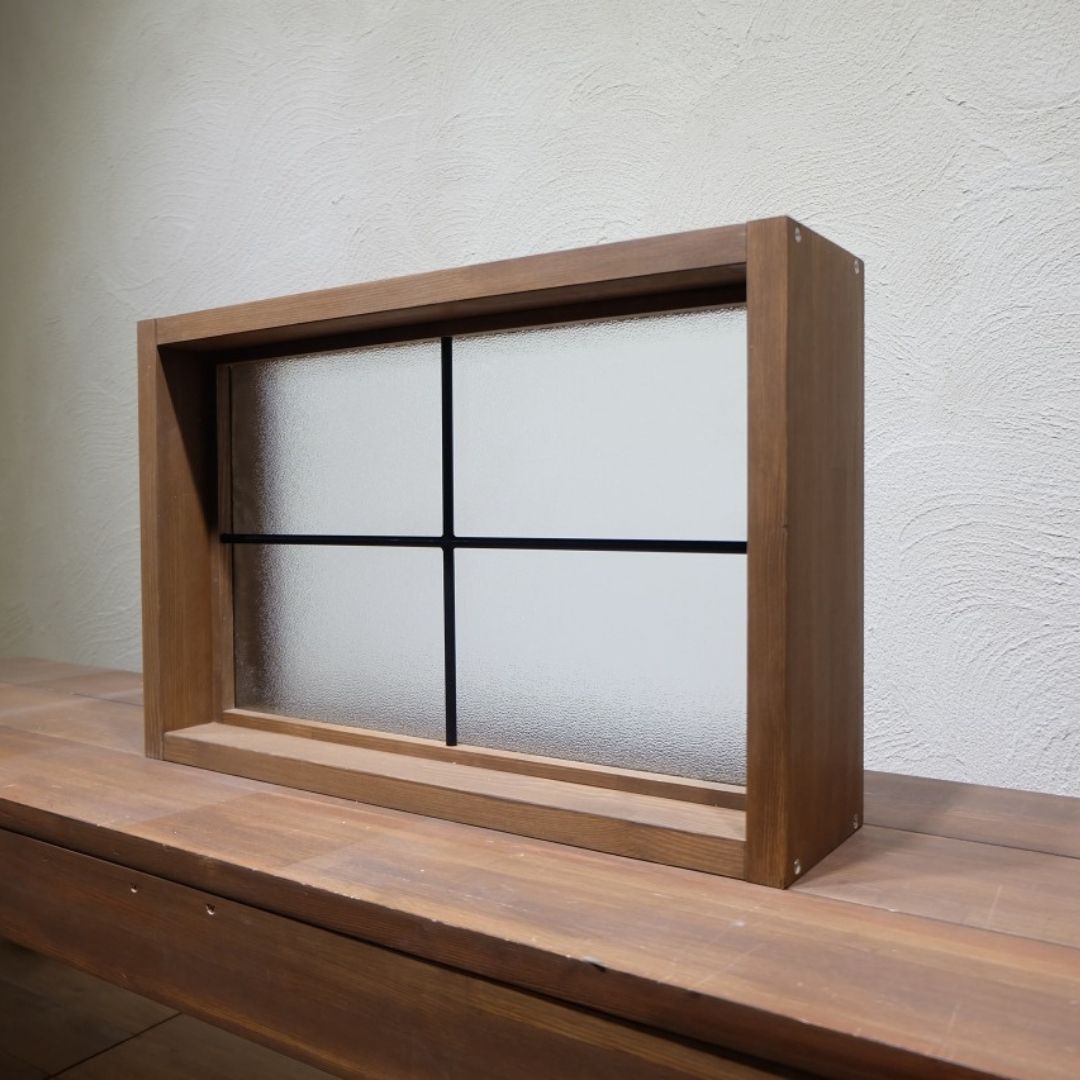 LOHAS material(ロハスマテリアル) サイズオーダー 室内窓 通風窓 インテリアウィンドウ FIX窓 框無し押縁仕様 片面アイアン格子 パイン LOHAS OILカラー塗装 W600×H400mm プレハング込の説明