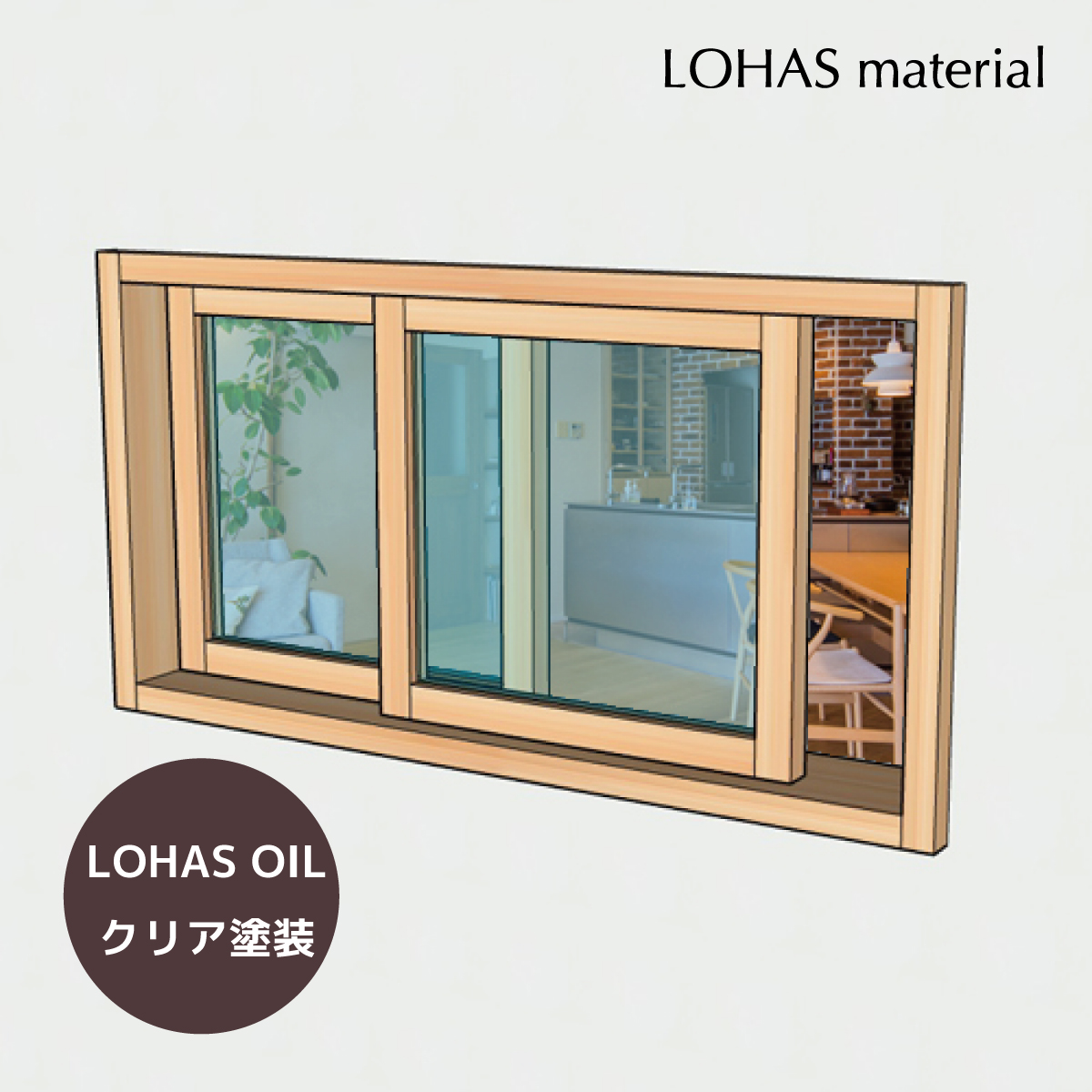 LOHAS material(ロハスマテリアル) 室内窓 通風窓 インテリアウィンドウ 引違窓(細框30mm敷居すべり仕様) パイン LOHAS OILクリア塗装 W770×H400mmの説明