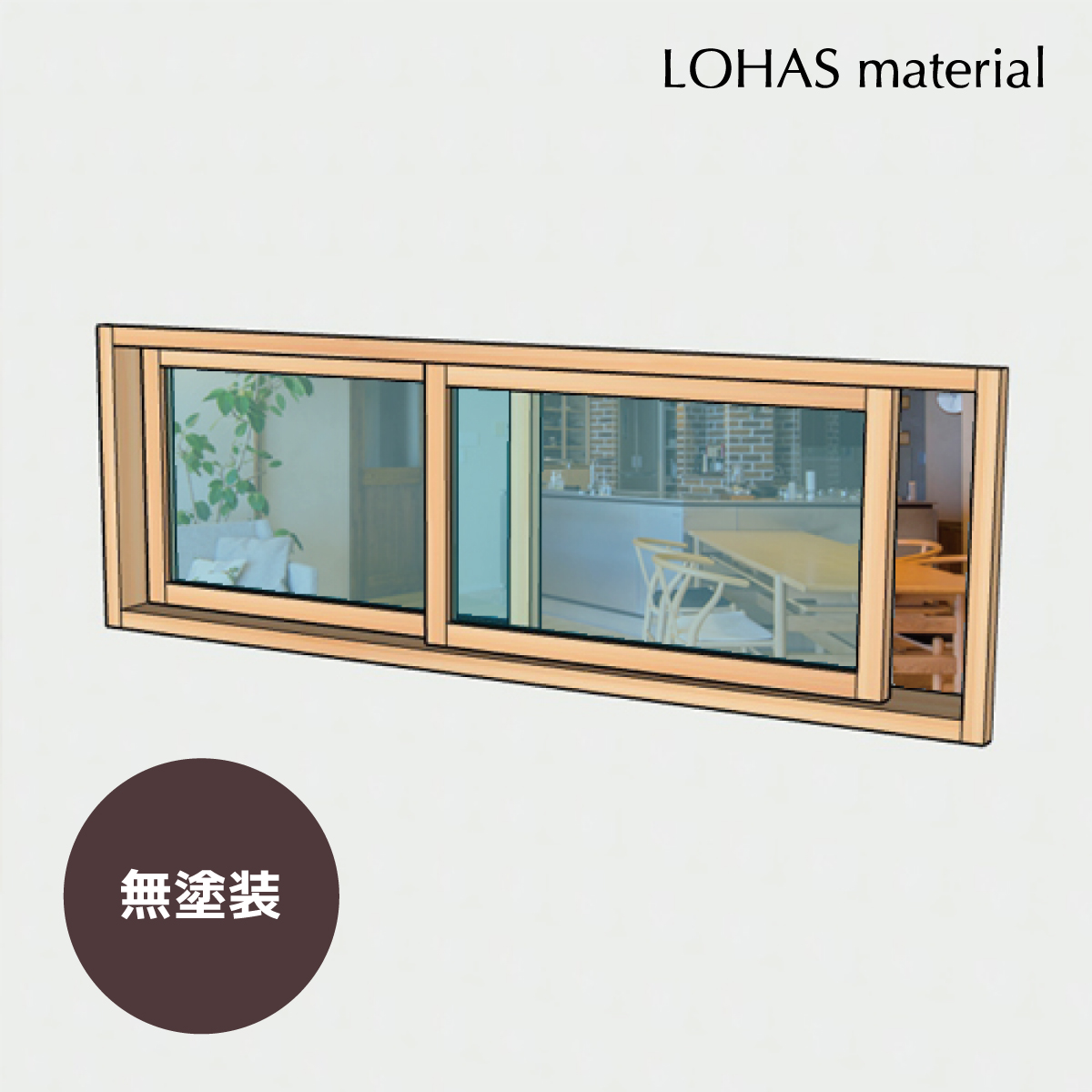 LOHAS material(ロハスマテリアル) 室内窓 通風窓 インテリアウィンドウ 引違窓(細框30mm敷居すべり仕様) パイン 無塗装 W1200×H400mmの説明