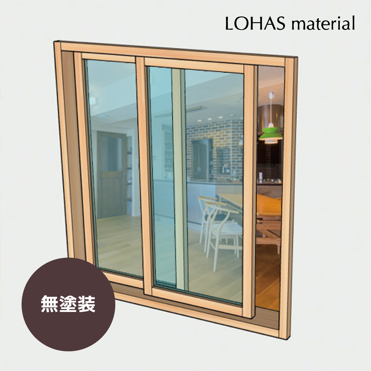 LOHAS material(ロハスマテリアル) 室内窓 通風窓 インテリアウィンドウ 引違窓(細框30mm敷居すべり仕様) パイン 無塗装 W770×H800mm
