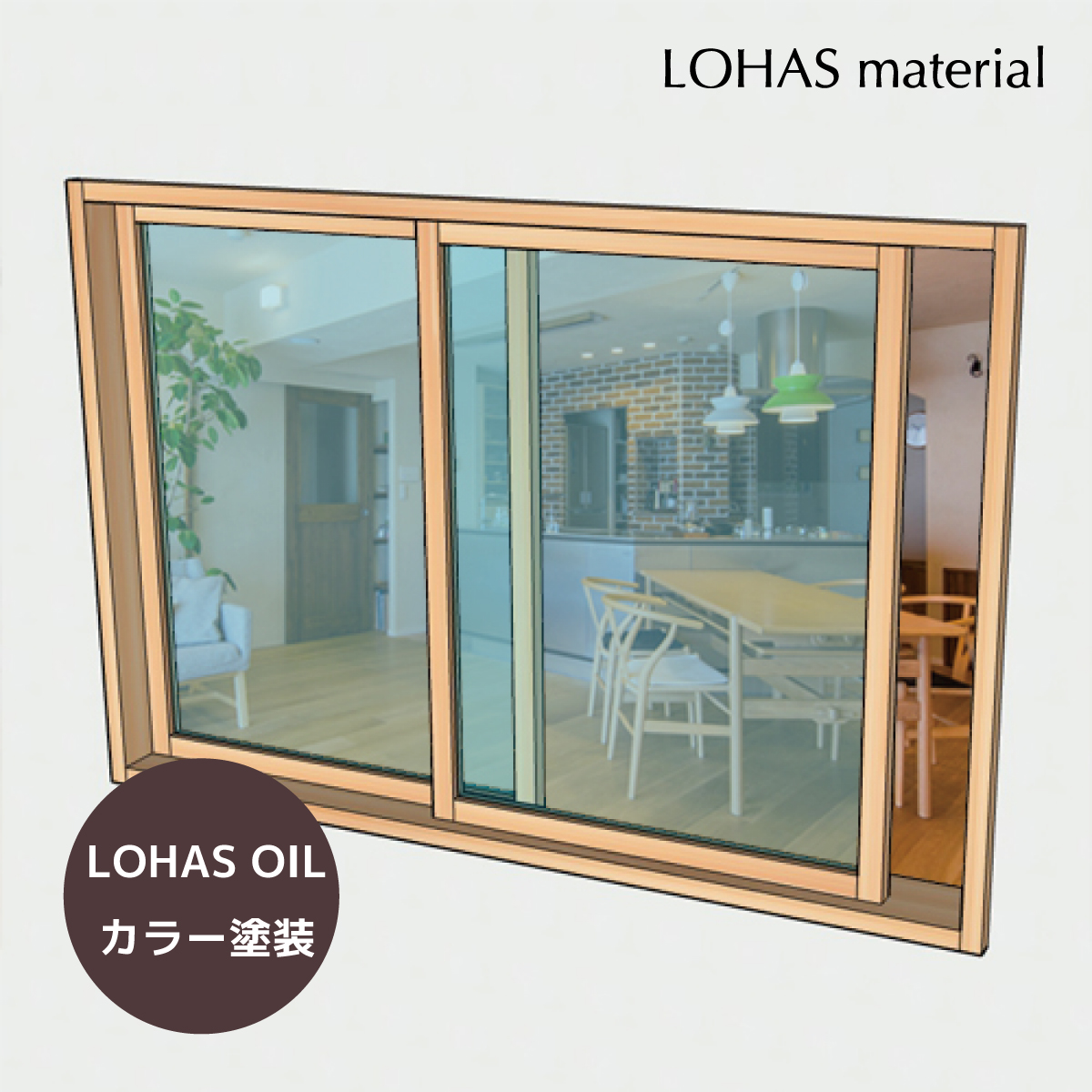 LOHAS material(ロハスマテリアル) 室内窓 通風窓 インテリアウィンドウ 引違窓(細框30mm敷居すべり仕様) パイン LOHAS OILカラー塗装 W1200×H800mmの説明