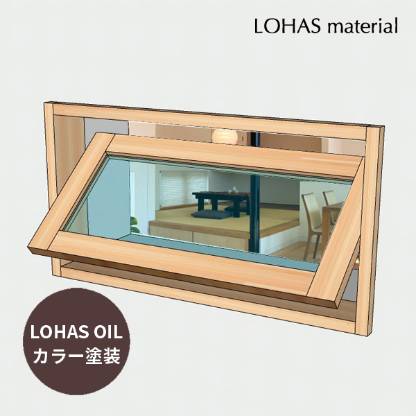 LOHAS material(ロハスマテリアル) 室内窓 通風窓 インテリアウィンドウ 横軸回転窓 パイン LOHAS OILカラー塗装 W770×H400mm プレハング込の説明