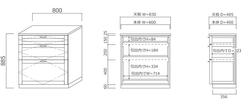 無垢造作家具 カウンターキャビネット パイン 無塗装 ZC-PM4-T061 W830×H885×D405mm