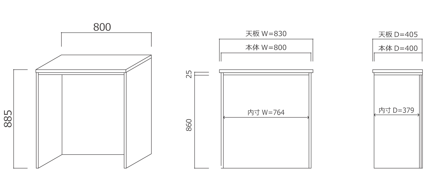 LOHAS material(ロハスマテリアル) 無垢造作家具 カウンターキャビネット パイン 無塗装 ZC-PM4-T201 W830×H885×D405mmの説明