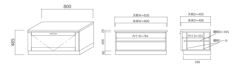 LOHAS material(ロハスマテリアル) 無垢造作家具 ローボード パイン 無塗装 ZL-PM4-T041 W830×H485×D405mmの説明