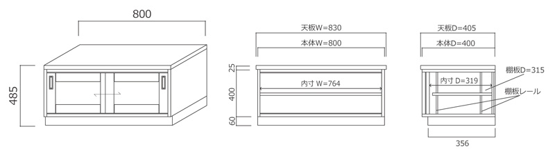 LOHAS material(ロハスマテリアル) 無垢造作家具 ローボード パイン 無塗装 ZL-PM4-T131 W830×H485×D405mmの説明