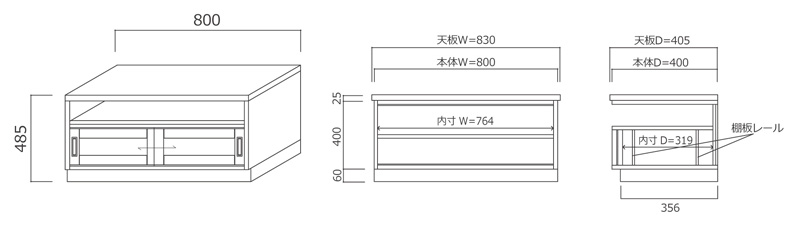 LOHAS material(ロハスマテリアル) 無垢造作家具 ローボード パイン 無塗装 ZL-PM4-T181 W830×H485×D405mmの説明