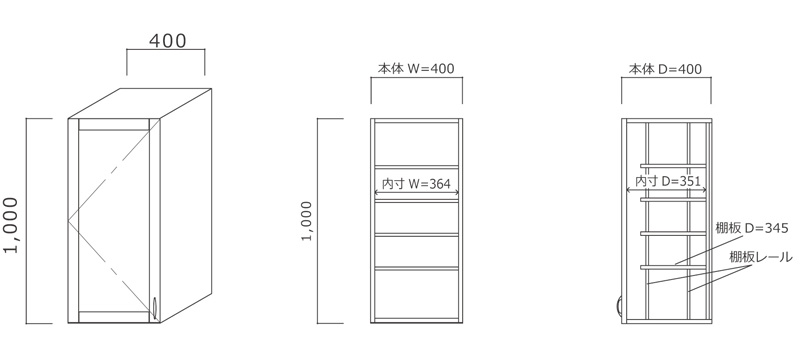 LOHAS material(ロハスマテリアル) 無垢造作家具 ミドルキャビネット パイン 無塗装 ZM-PM4-T010 W400×H1000×D400mmの説明