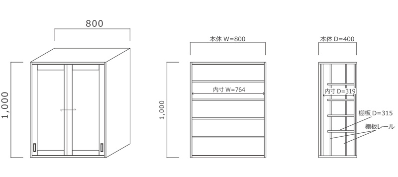 LOHAS material(ロハスマテリアル) 無垢造作家具 ミドルキャビネット パイン 無塗装 ZM-PM4-T131 W800×H1000×D400mm