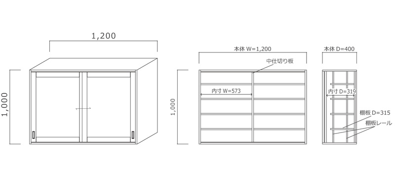 LOHAS material(ロハスマテリアル) 無垢造作家具 ミドルキャビネット パイン 無塗装 ZM-PM4-T132 W1200×H1000×D400mmの説明