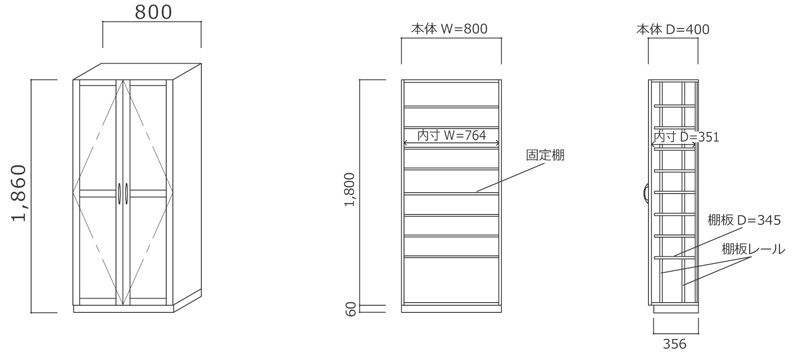 LOHAS material(ロハスマテリアル) 無垢造作家具 トールキャビネット パイン 無塗装 ZT-PM4-N031 W800×H1860×D400mmの説明