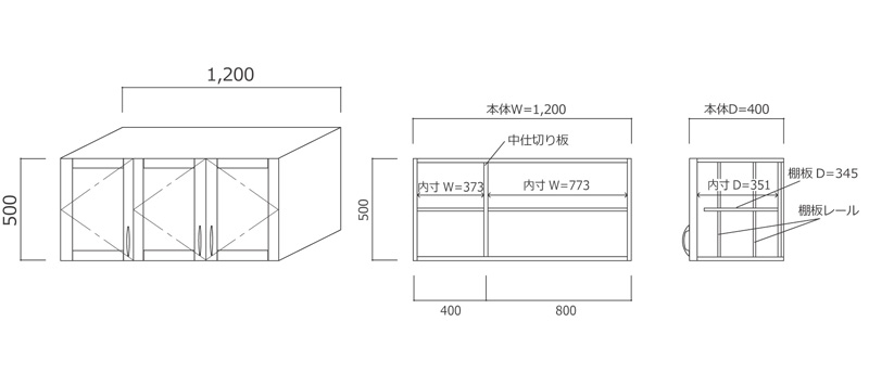LOHAS material(ロハスマテリアル) 無垢造作家具 アッパーキャビネット パイン 無塗装 ZU-PM4-T192 W1200×H500×D400mmの説明