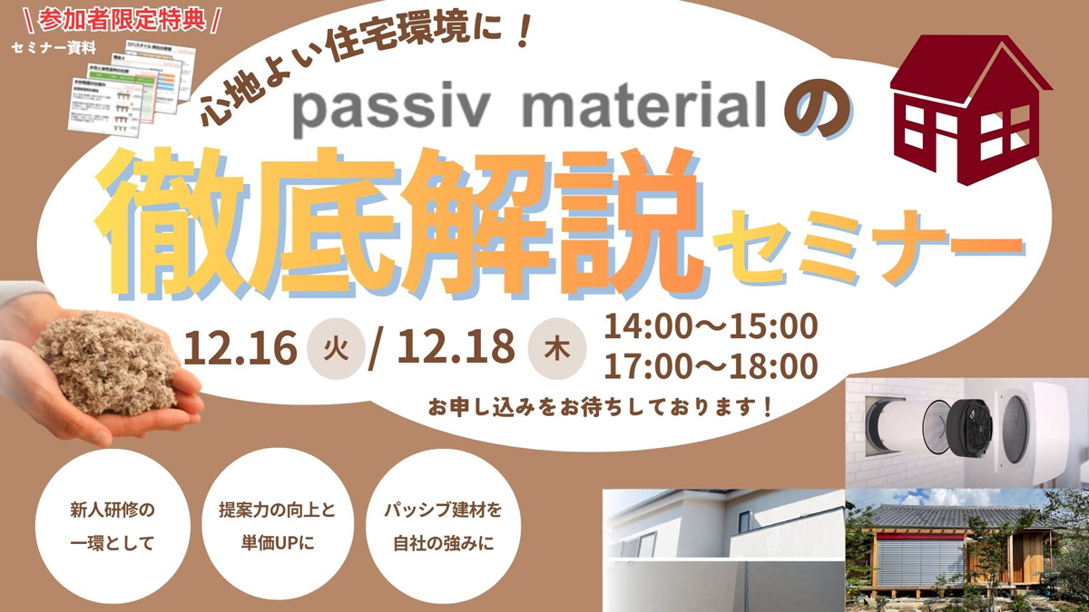 【建築会社様向け】passiv material 建材の徹底解説セミナー! 建材webセミナー(2025年12月)