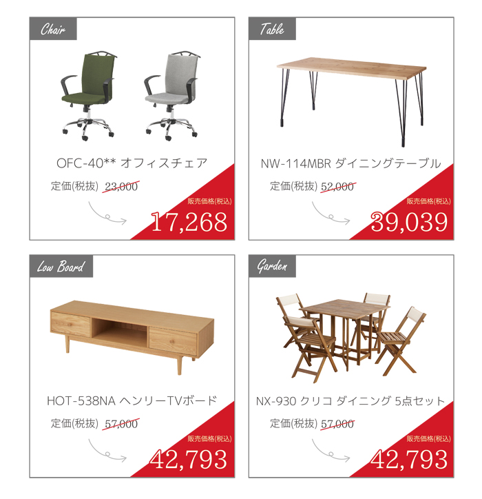 ソファや棚から、クッションなどの雑貨まで充実のラインナップ!