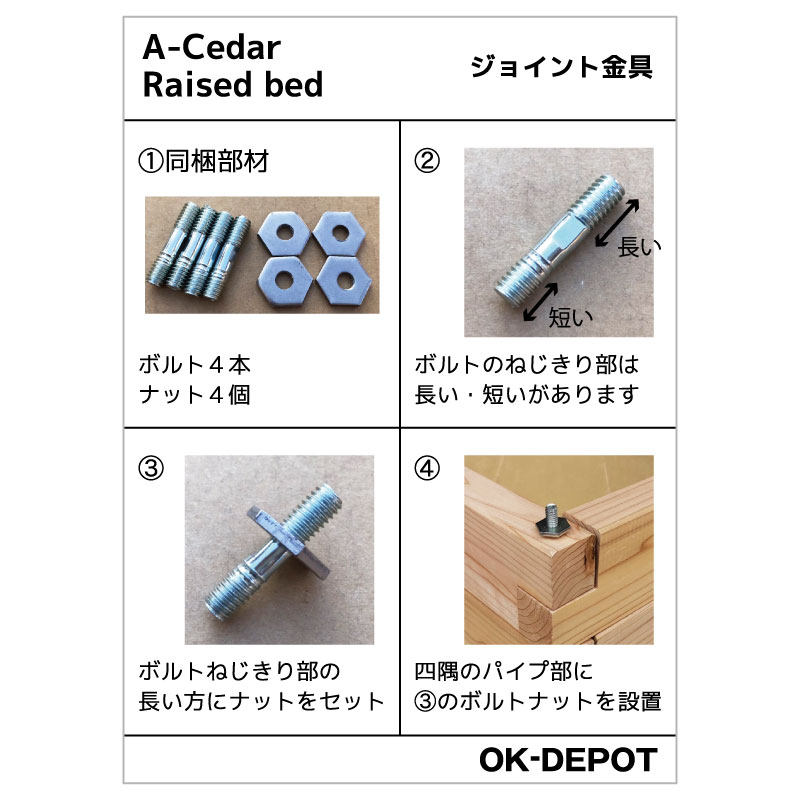 OK-DEPOT material A-Ceder Raised bed レイズドベッド ジョイント金具セットの説明