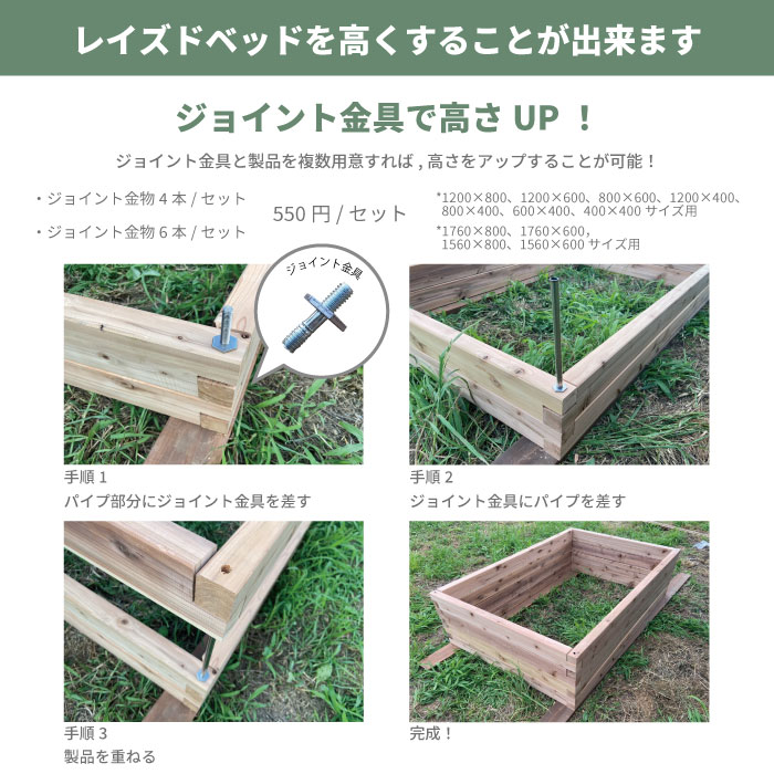 - レイズドベッド用の高さを変えるためのジョイント金具です