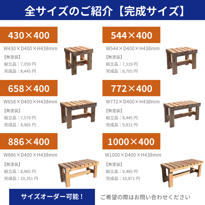 OK-DEPOT material A-Cedar Garden bench ガーデンベンチ 組立品/完成品 無塗装の説明