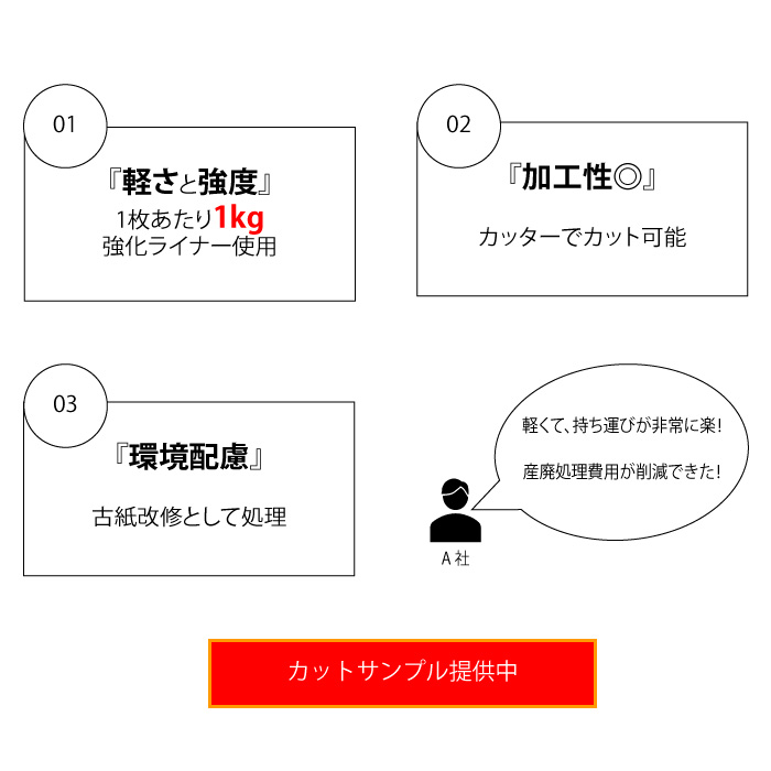 • 軽量で強度があり、100%リサイクルできる養生材です。