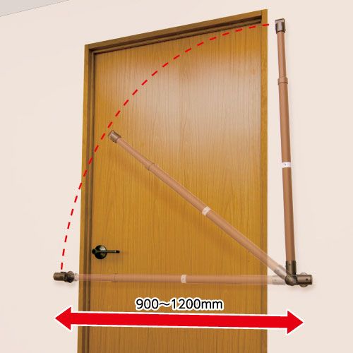 跳ね上げた際に手すりを固定するためのキャッチブラケットNは別売です。φ 35・φ32の手すり棒どちらでも使用できます。襖用脱着手すり棒、35強化コート手すり棒、丸棒手すりはご使用になれません。